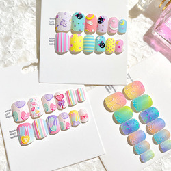 12 adet karton çocuk yanlış tırnak ipuçları giyilebilir yapay tırnaklar tırnak ipuçları üzerinde basın