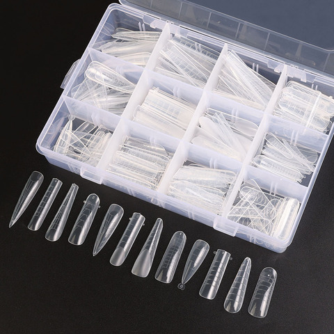 Tampa completa quadrado plástico dedo unhas dicas 288 peças de longa duração dicas de extensão rápida