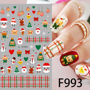 Serie F 3D papel Navidad Nail Art pegatinas copo de nieve ciervo alce envolturas y decoraciones calcomanías