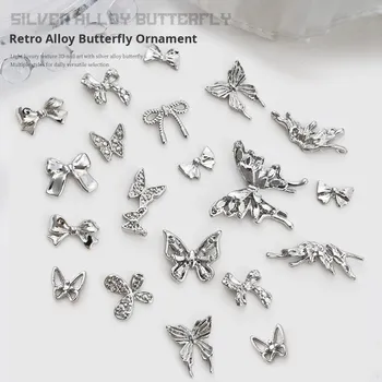 Luxury 3D Silver Bowknot Alloy Nail Art Accessories Retro Butterfly Metal Rhinestone Ornament Decal Decoration Stickers & Decals
